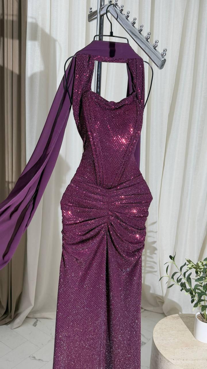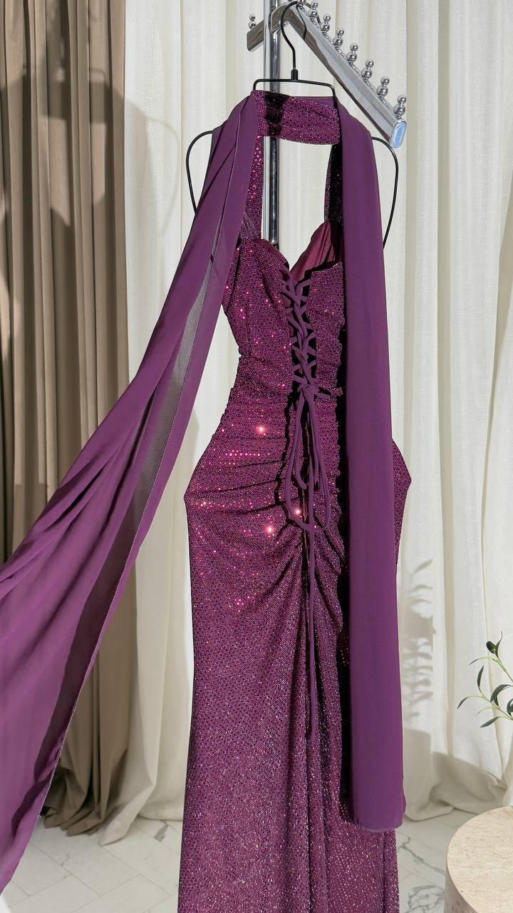 نوفر فستان لكل من تهتم بجمالها وأناقتها وتميزها✨خامة البوليستر البراقة بلونين الأرجوان الملكي والموكا الشهير مع وشاح جورجيت شيفون 🎶المقاسات:٦-١٦ ✨