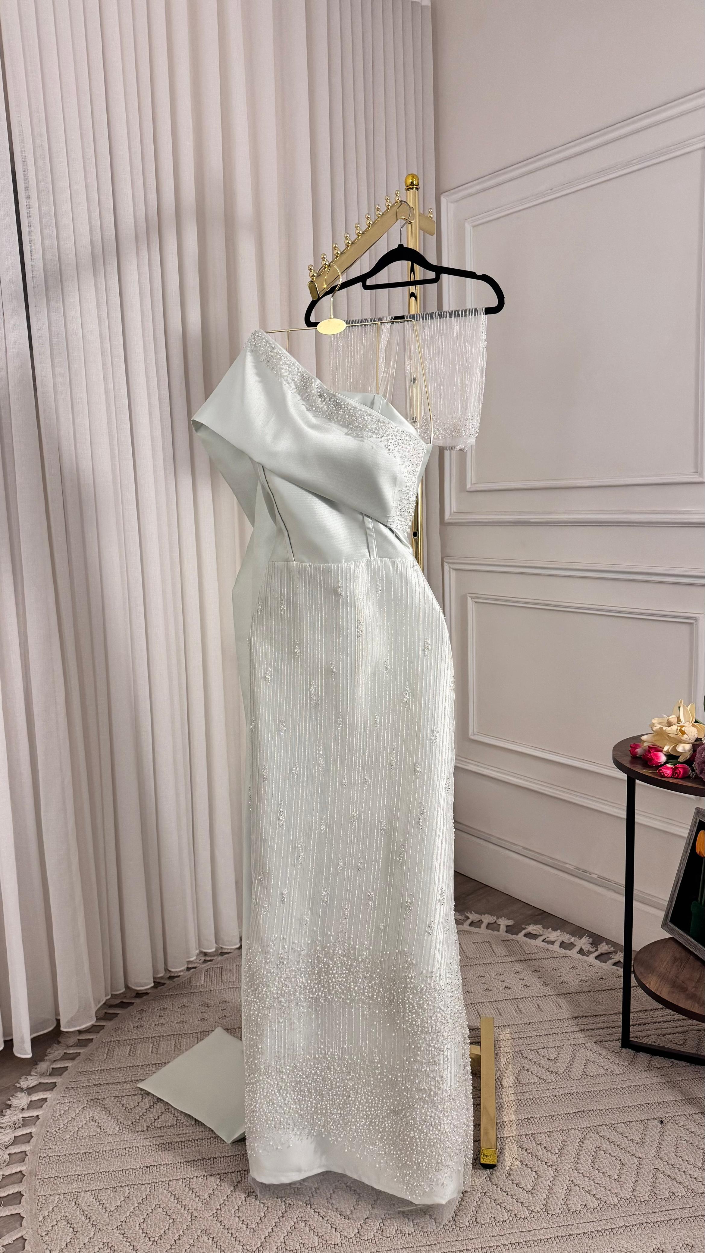 ✨ أبهري الجميع بإطلالة راقية واستثنائية مع هذا الفستان الساحر الذي يجمع بين النعومة الملكية والفخامة الراقية