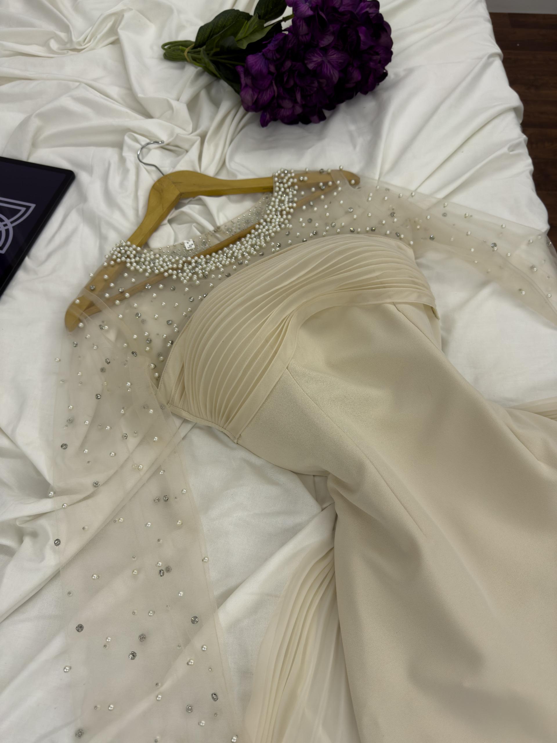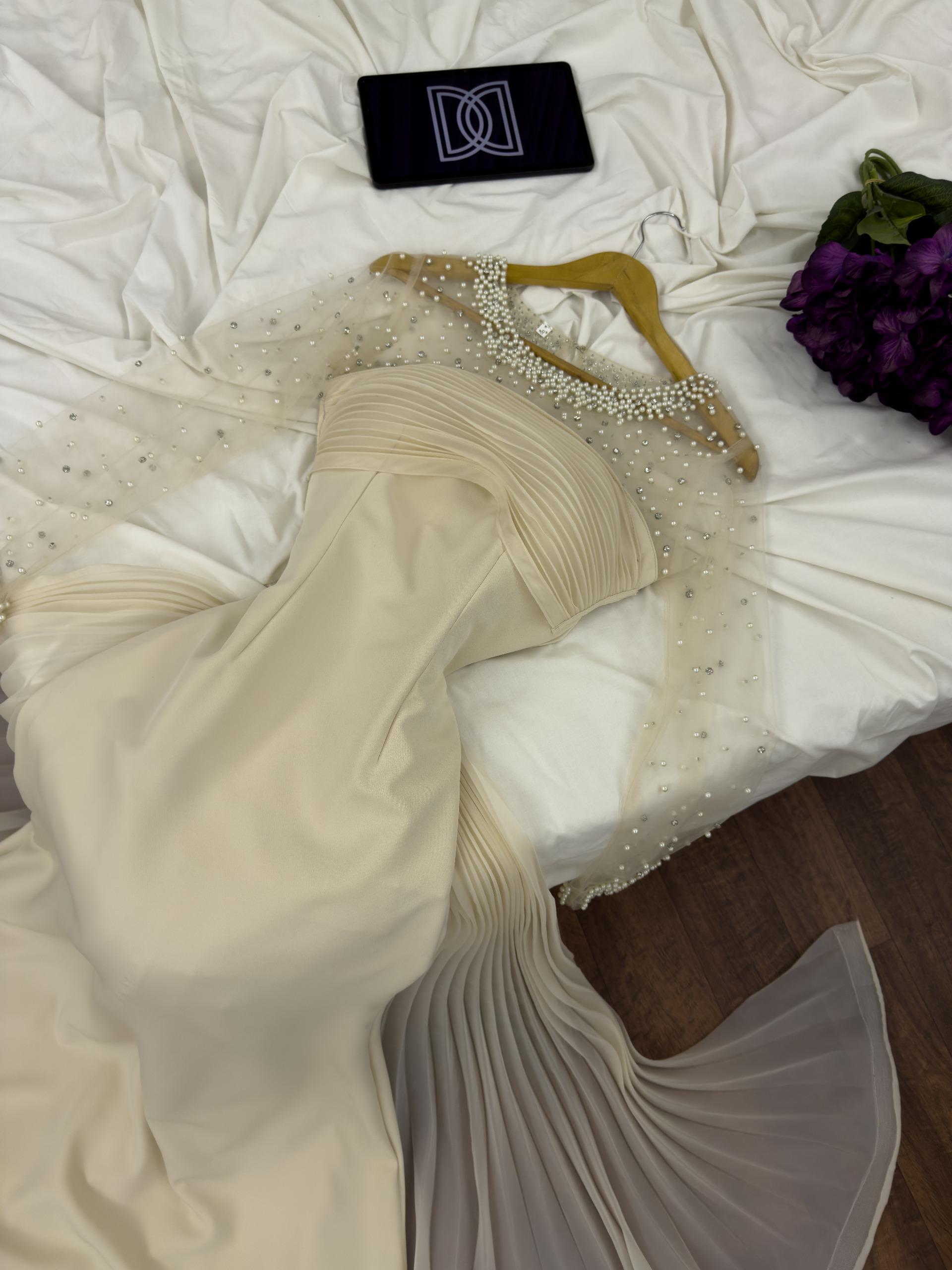 ✨ أبهري الجميع بإطلالة راقية واستثنائية مع هذا الفستان الساحر الذي يجمع بين النعومة الملكية والفخامة الراقية