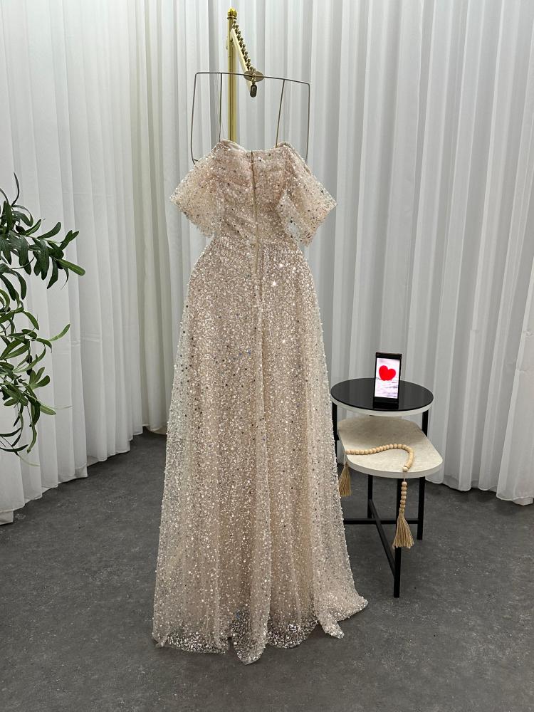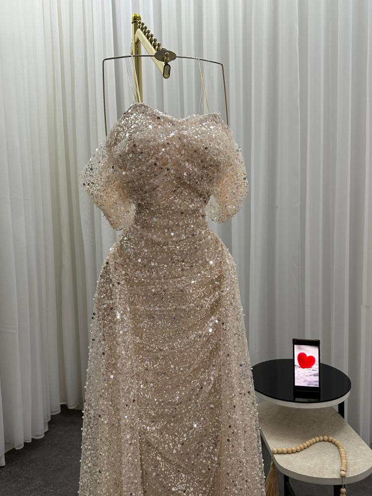 ✨ أبهري الجميع بإطلالة راقية واستثنائية مع هذا الفستان السكري الساحر الذي يجمع بين النعومة الملكية والفخامة الراقية