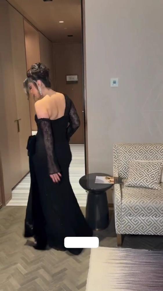 وصل اااالأنيق المقاساتبالأرقام | 6-8-10-12-14بالحروف S-M-L-XL-XXL القماش | كريشه +اكمام دانتيل خرز+فيونكة تفته